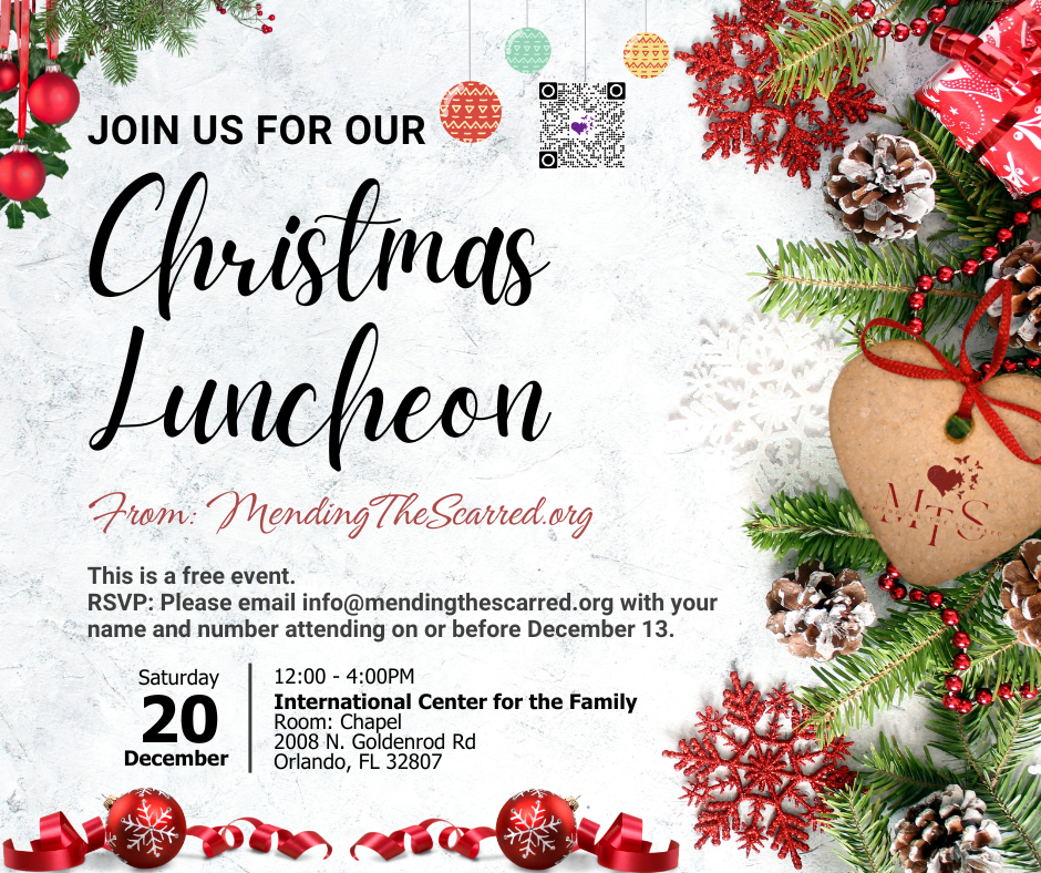 This December, all Mending The Scarred campuses will join together for one special celebrationβour Christmas Luncheon!
