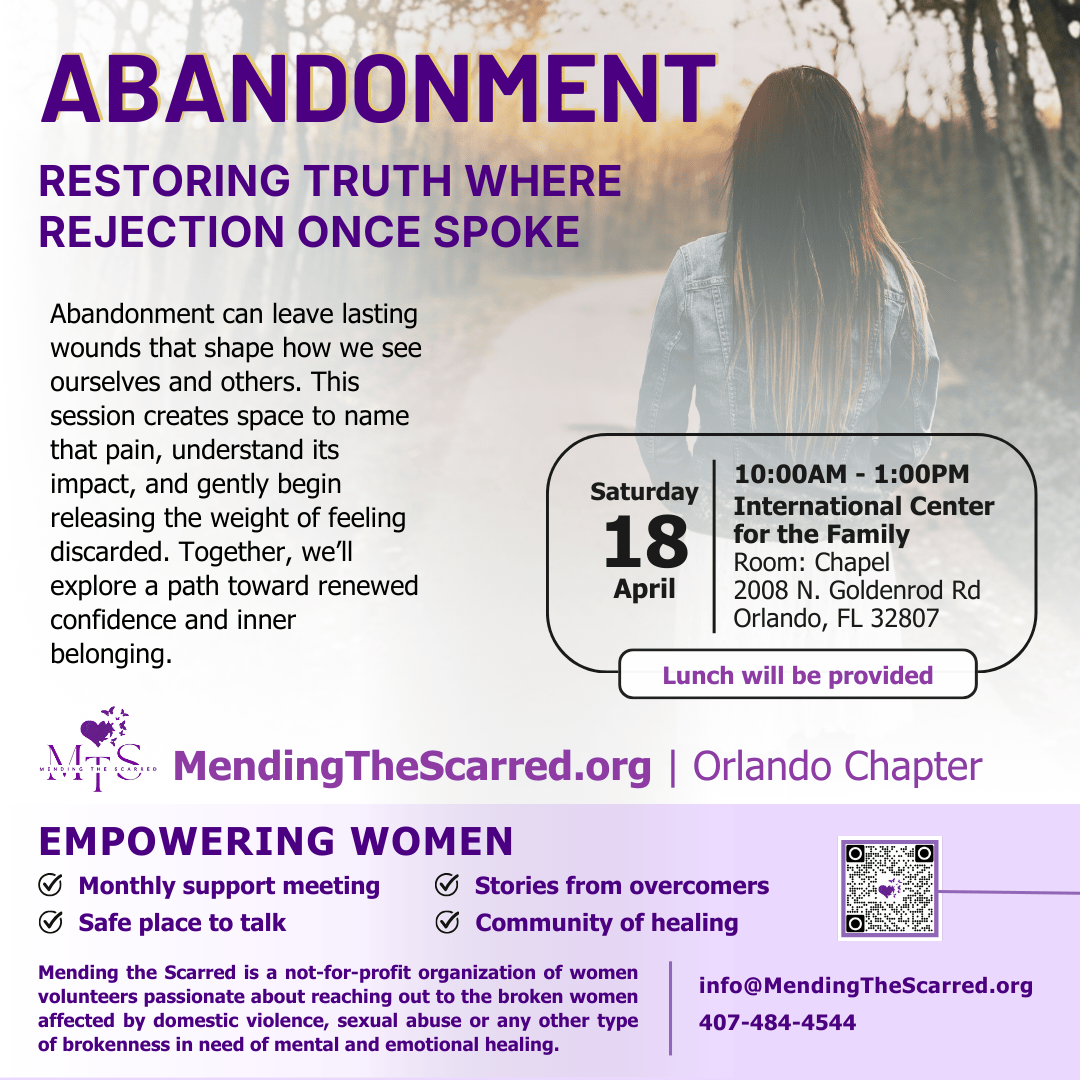 Abandonment can leave quiet but lasting scars on the heart. It often shapes how we see ourselves and how we relate to others. In this month’s gathering, we will gently acknowledge those wounds, explore how they affect our lives, and begin releasing the heavy feeling of being rejected, forgotten or left behind. Together, we will move toward healing, renewed confidence, and a deeper sense of belonging.